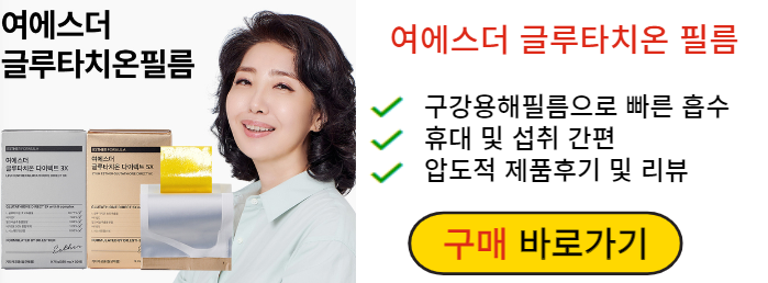 구강용해 필름을 통해 점막부착으로 입안에서 빠르게 흡수가 됩니다. 비타민 C와 같은 다양한 부원료가 함유되어 있으며 시즌이 거듭해 가면서 순도가 높아졌습니다. 글루타치온 제품들 중에서 압도적으로 제품 후기가 많고 리뷰가 많은 제품입니다. 상단 구매 바로가기를 통해 여에스더 글루타치온 필름에 대해 더 알아보시고 구매하실 수 있습니다.