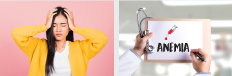 반면 빈혈은 혈액 내의 적혈구 수나 헤모글로빈 양이 부족하여 혈액이 산소를 전달하지 못하는 상태를 말합니다. 이에 따라, 빈혈 환자는 일반적으로 산소공급이 충분하지 않아 피로감, 무기력감, 두통, 어지러움 등의 증상이 나타날 수 있습니다. 빈혈의 원인으로는 철분, 비타민 B12, 엽산 등의 영양소 부족, 세포판막증, 신장질환, 악성종양 등이 있습니다.