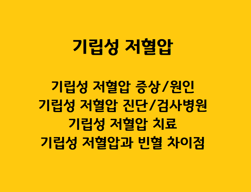 따라서, 기립성 저혈압과 빈혈은 각각 다른 원인과 증상을 가지고 있습니다. 기립성 저혈압은 혈압의 일시적인 변화로 인한 증상을 보이고, 빈혈은 혈액 내 산소공급의 부족으로 인한 증상을 보입니다.>> 빈혈 수치, 빈혈 진료 병원
