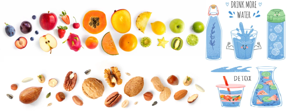충분한 수분을 섭취하여 몸 내 담즙이 묽은 상태를 유지할 수 있도록 합니다. 물, 허브 차, 무가당 과일 주스 등을 마시는 것이 좋습니다. - 천연 디톡스 음식