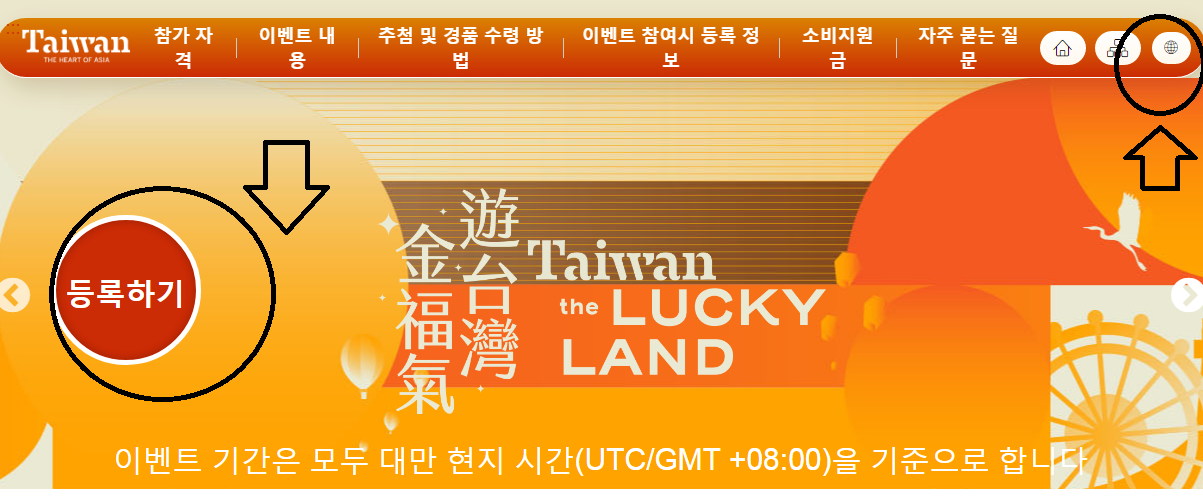 대만 여행지원금은 대만 교통부 관광국에서 주최하는 여행지원금 추첨이벤트입니다. "Taiwan the LCUKY LAND"라는 이벤트는 대만 도착일 기준 1-7일 전 해당 홈페이지를 통해 지원할 수 있습니다. 홈페이지에 개인정보를 등록해서 받은 QR 코드를 대만 공항 입국 홀의 이벤트 데스크에 보여주면, 당첨여부를 바로 확인할 수 있습니다.