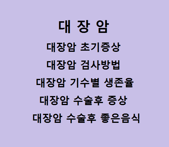대장암은 대장 또는 직장의 선종 세포에서 암이 발생하는 암 종류입니다. 대장은 소화 과정의 마지막 부분이며, 대변을 형성하고 이를 배출하는 기능을 담당합니다. 이 위치에서 암이 발생하면 대장암이라고 합니다. 대장암은 조기에 발견되지 않을 경우 진행이 빠르고 치명적일 수 있으므로 조기 발견과 치료가 중요합니다. 대장암의 초기 증상과 검사방법, 기수별 생존율 및 수술 후 나타날 수 있는 증사과, 수술 후에 좋은 음식에 대해 알아보도록 하겠습니다.