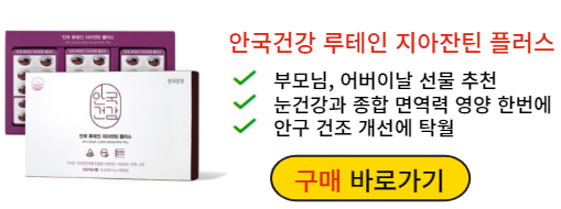 부모님께 어버이날 선물 혹은 명절 선물로 안성맞춤인 안국건강 루테인 지아잔틴 플러스는 어린이도 같이 섭취가능한 온 가족 눈건강 영양제입니다. 특히 안구건조개선에 탁월하며, 눈건강 뿐만 아니라 종합면역력 영양제로 섭취하기에도 좋습니다.