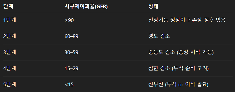 만성신부전 진단검 📊 만성신부전 5단계 (CKD Staging)
