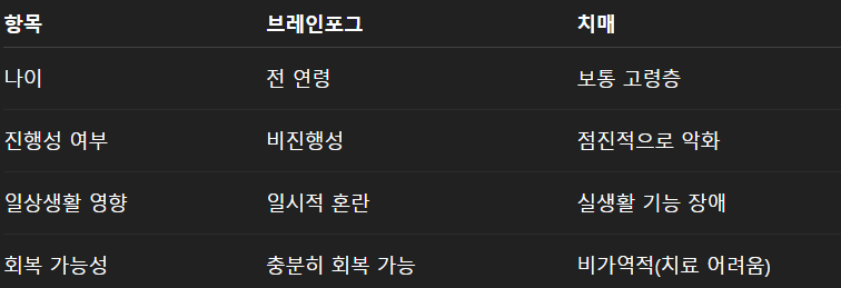 브레인포그 치료 🧠 브레인포그 vs 치매 – 차이점
