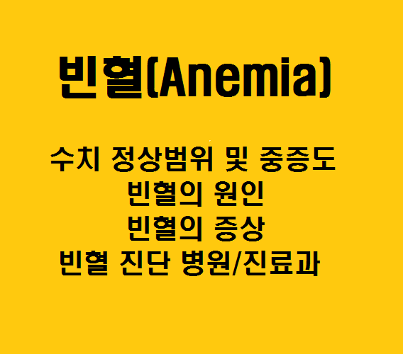 이번 글을 통해서 빈혈 수치의 정상범위와 중증도, 빈혈의 원인과 증상에 대해 알아보도록 하겠습니다.
