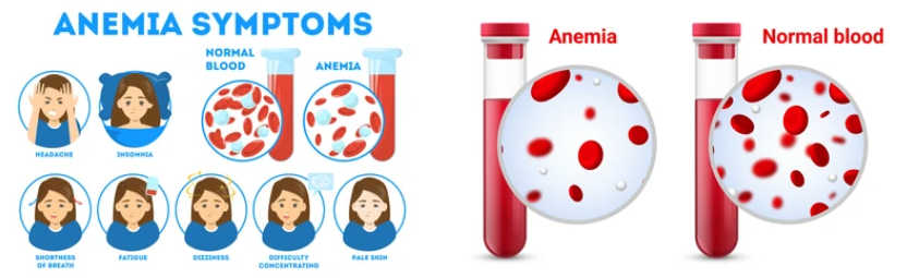 빈혈은 적혈구의 수량 또는 기능적 이상으로 인해 혈액 내 산소 운반 능력이 저하되는 상태를 말합니다. 이에 따라 다양한 증상이 나타날 수 있습니다.
