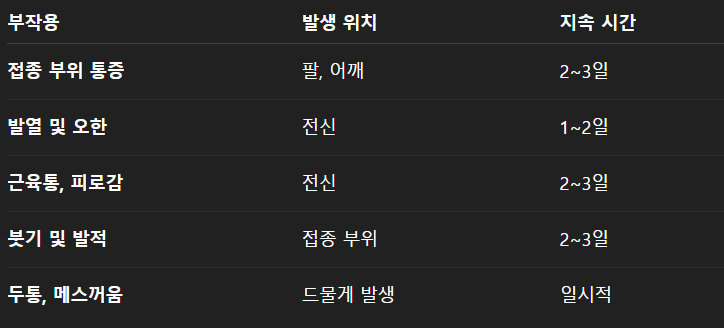 싱그릭스 부작용 🔸 대부분 자연 회복, 진통제 복용 가능