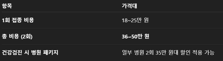 싱그릭스 접종 가격 💡 보험 비급여 항목이므로 병원마다 차이가 큼. 전화 문의 필수!