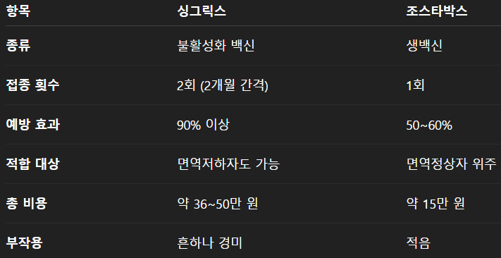 💉 싱그릭스 vs 조스타박스 완벽 비교|가격, 부작용, 접종간격, 병원까지 정리