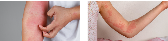 피부에 가려움이 발생하며, 강한 자극으로 인해 긁어서 피부 상처가 생길 수 있습니다. - 발진