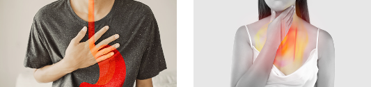식사 후 만복감, 위부 팽만감 등의 소화불량 증상을 경험할 수 있습니다. 위산의 역류로 인해 소화기관의 기능이 저하되므로 소화가 원활하게 이루어지지 않을 수 있습니다. - 인후통