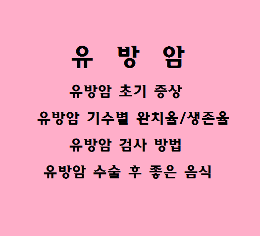 유방암은 여성들 사이에서 가장 흔한 종류의 암입니다. 그러나 남성들에게도 발생할 수 있습니다. 유방암은 유방 조직 내에서 비정상적인 세포의 성장으로 인해 발생합니다. 일반적으로 유방암은 종양이 유방 내부에 형성되는 것으로 나타납니다. 초기에는 종양이 작아서 눈으로 확인하기 어렵기 때문에 여성들은 유방 자가검진 및 정기적인 유방촬영 검사를 받는 것이 중요합니다. 이를 통해 이상적인 소견이 발견되면 조기에 조치를 취할 수 있습니다. 유방암 예방을 위해서는 건강한 생활습관을 유지하고, 규칙적인 유방 자가검진 및 정기적인 유방촬영 검사를 받는 것이 중요합니다. 이러한 조치들은 유방암의 조기 발견과 치료에 큰 도움을 줄 수 있습니다. 이번 글을 통해 유방암의 초기 증상과, 기수별 완치율 및 생존율, 유방암 검사방법과 유방암 수술 수 회복에 좋은 음식들에 대해 알아보도록 하겠습니다.