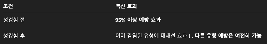 예방접종 백신 종류 👉 HPV 백신은 성 경험 이전 접종 시 가장 효과적입니다.