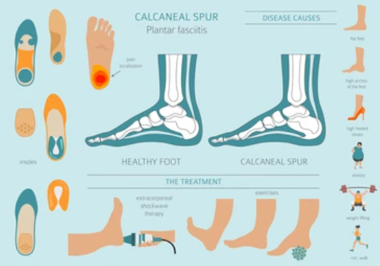 부적합한 신발, 힐이 높은 신발, 지지력이 부족한 신발을 착용할 경우 발의 부담이 증가하고 족저근막에 지속적인 스트레스가 가해질 수 있습니다. - 발 구조의 문제