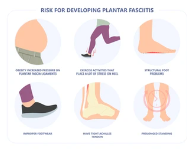 건강 상태, 근육의 약화, 잘못된 보호 동작, 발의 충격 흡수 능력 등 다양한 요소가 족저근막염 발생에 영향을 줄 수 있습니다.