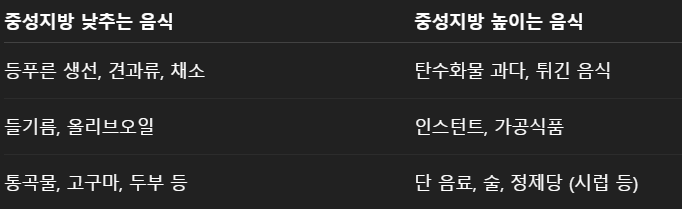 💡 중성지방 낮추는 음식 vs 높이는 음식