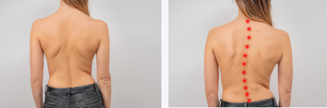 척추의 측만으로 굽어져 허리가 비뚤어지면서, 허리의 곡률이 불균형하게 변할 수 있습니다.