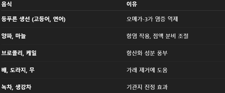 🍽️ 천식에 좋은 음식 vs 피해야 할 음식