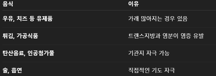 천식에 좋은 음식 ❌ 피해야 할 음식