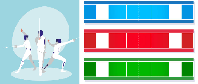 - 경기자는 플뢰레(Foil), 에페(Épée), 사브레(Sabre) 중 하나의 무기를 사용합니다.