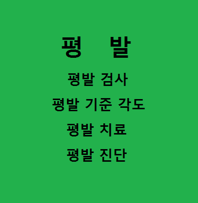 평발(Flat feet)은 발의 아치(foot arch)가 충분히 형성되지 않아 발바닥이 평평하게 펴져 있는 상태를 의미합니다. 일반적으로 발바닥의 내부 부분이 땅과 접촉하는 형태를 가지며, 발의 안정성과 충격 흡수 기능이 제한될 수 있습니다. 평발은 선천적인 요소로 발생할 수도 있으며, 발의 구조, 근육 및 인대의 약화, 골절 또는 부상으로 인해 후천적으로 발생할 수도 있습니다. 평발의 증상은 개인에 따라 다를 수 있으며, 다리와 발의 피로, 발목, 발 아치, 발바닥의 통증 및 불편감이 나타날 수 있습니다. 이번 글을 통해 평발 검사법과, 평발 기준 각도, 평발 치료방법들과 진단방법에 대해 알아보도록 하겠습니다.