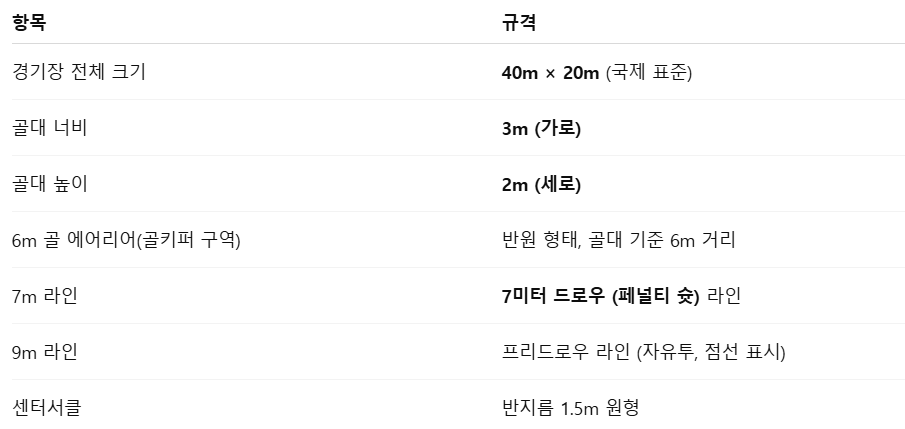 핸드볼이란 🏟️ 핸드볼 경기장 크기 & 골대 규격